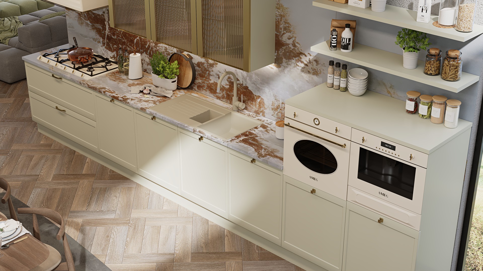 Bu güçlü iş birliğinin en zarif yansımalarından biri ise, Vanucci FRAME mutfak modelidir. Klasik tarzın zamansız çizgilerini modern yorumlarla harmanlayan FRAME serisi, mat lake yüzeyiyle hem şıklığı hem de kullanım konforunu bir araya getirir.